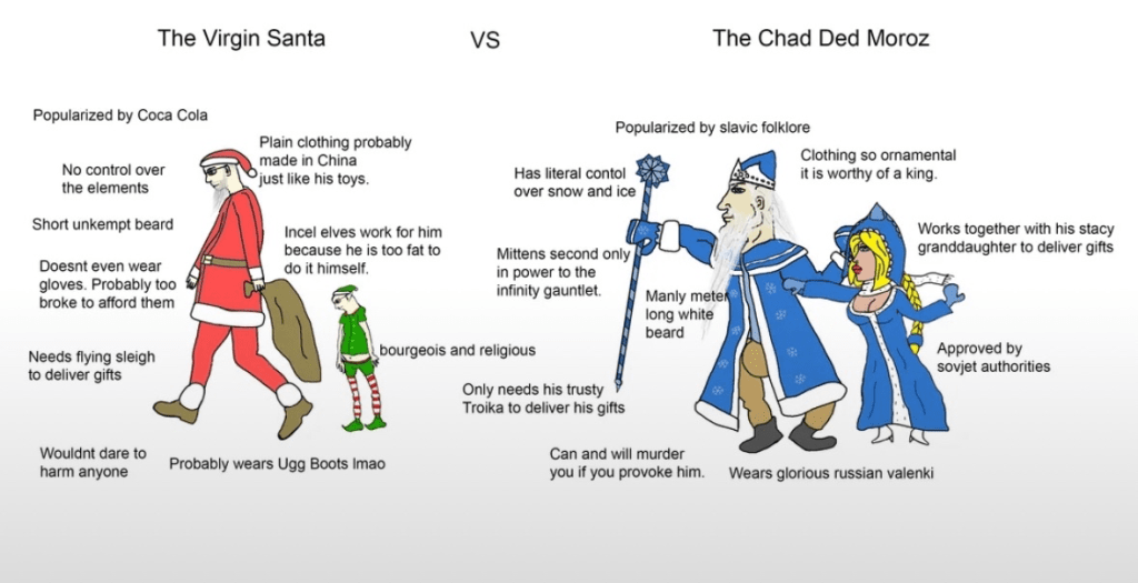 We just had Santa/Saint Nicholas, and another one…Black Piet, I think? Not the weird Dutch blackface one, but just a second Santa Claus figure who followed along dressed in black robes (not red) and had the job of handing out the coal to the bad kids (presumably so that Santa wouldn’t have to get his hands dirty, literally or metaphorically).
