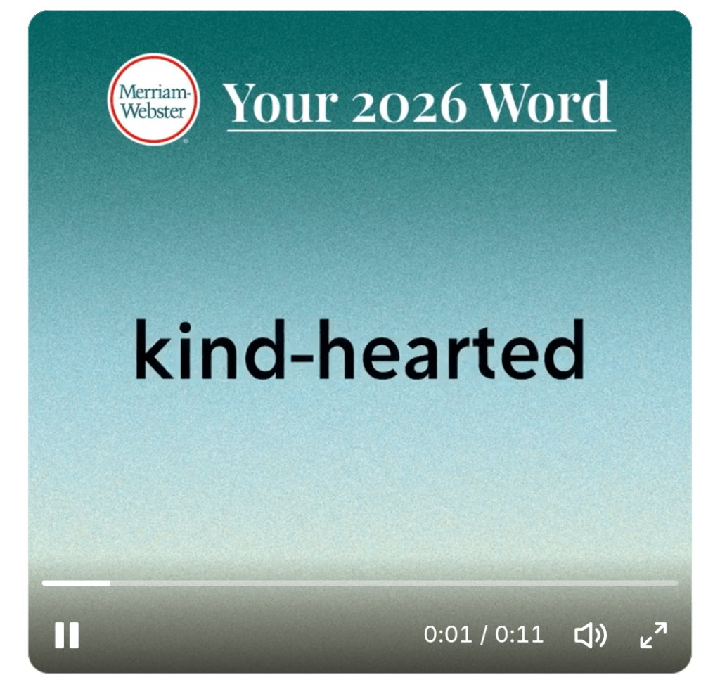 My word of the year, according to the Merriam Webster Bluesky account, is Kind-Hearted.