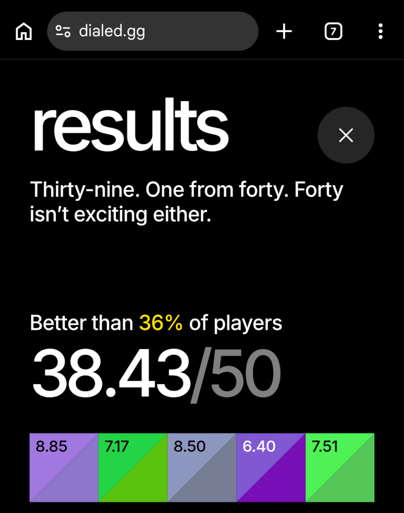 My color memory is a 37.3/50. Please do worse so I feel better.