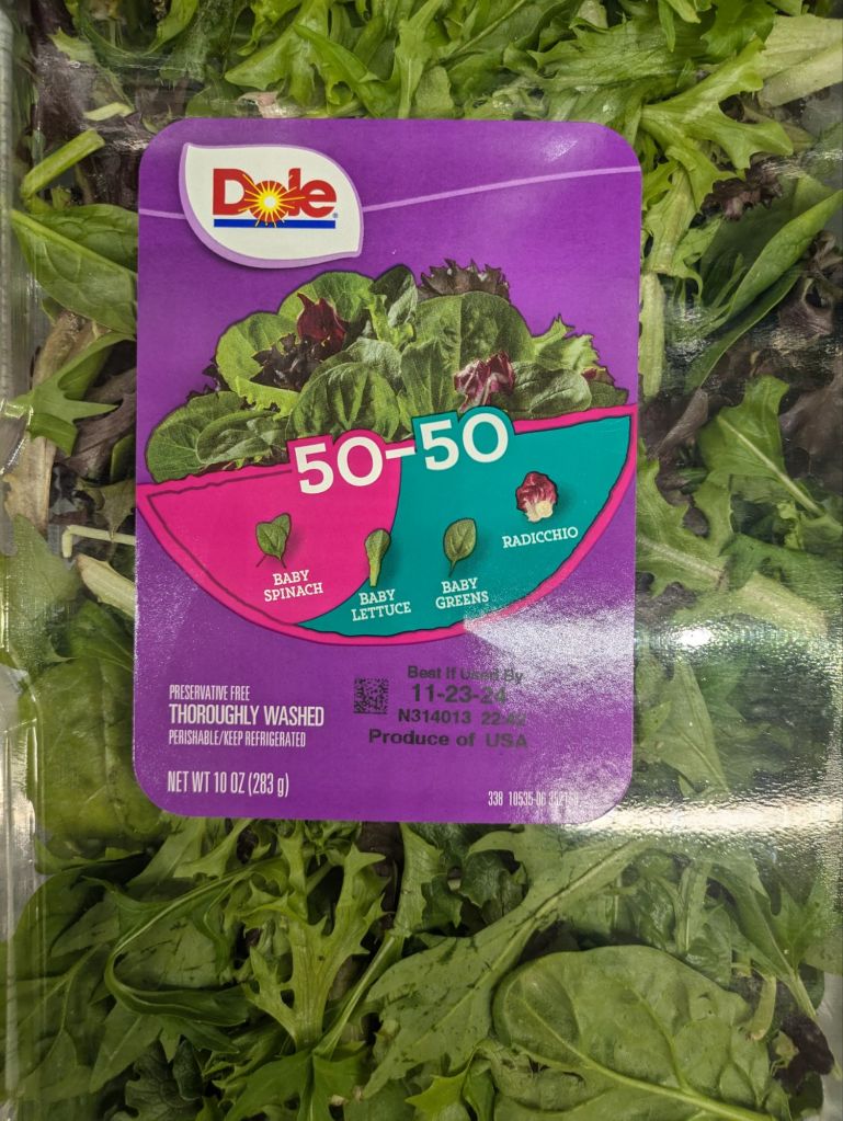 This package of greens is just baffling. How is it 50/50 of four different greens? And why is the 50/50 geometric shape more like 30/70?